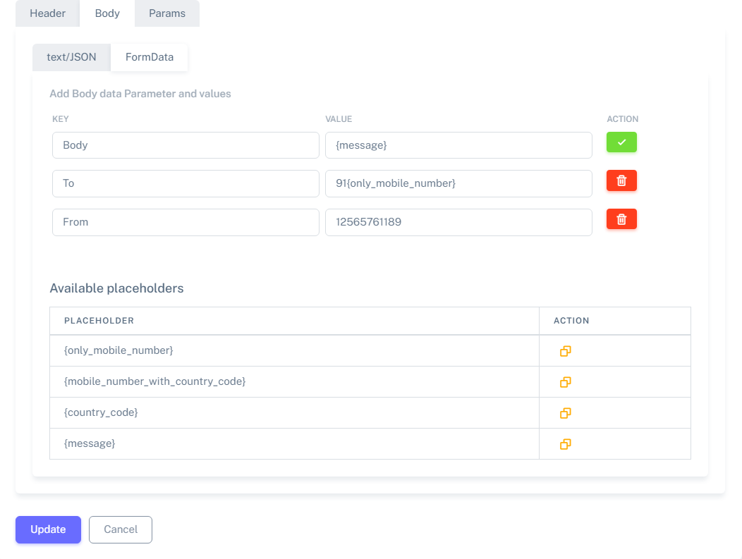 Settings → Messaging & Integrations → SMS Gateway.Fill in the required fields: