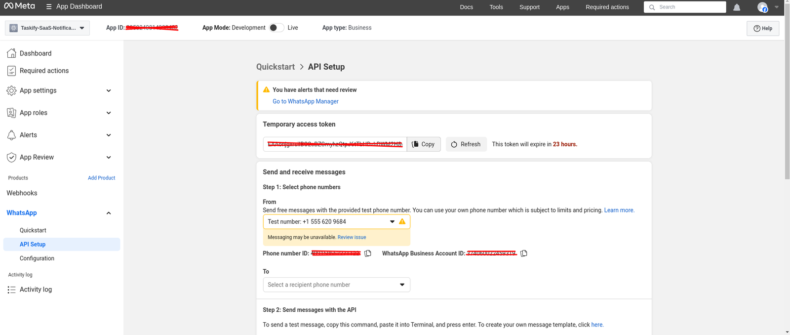 ⚠️ Note: WhatsApp requires business verification for production use. Test mode works with temporary tokens.